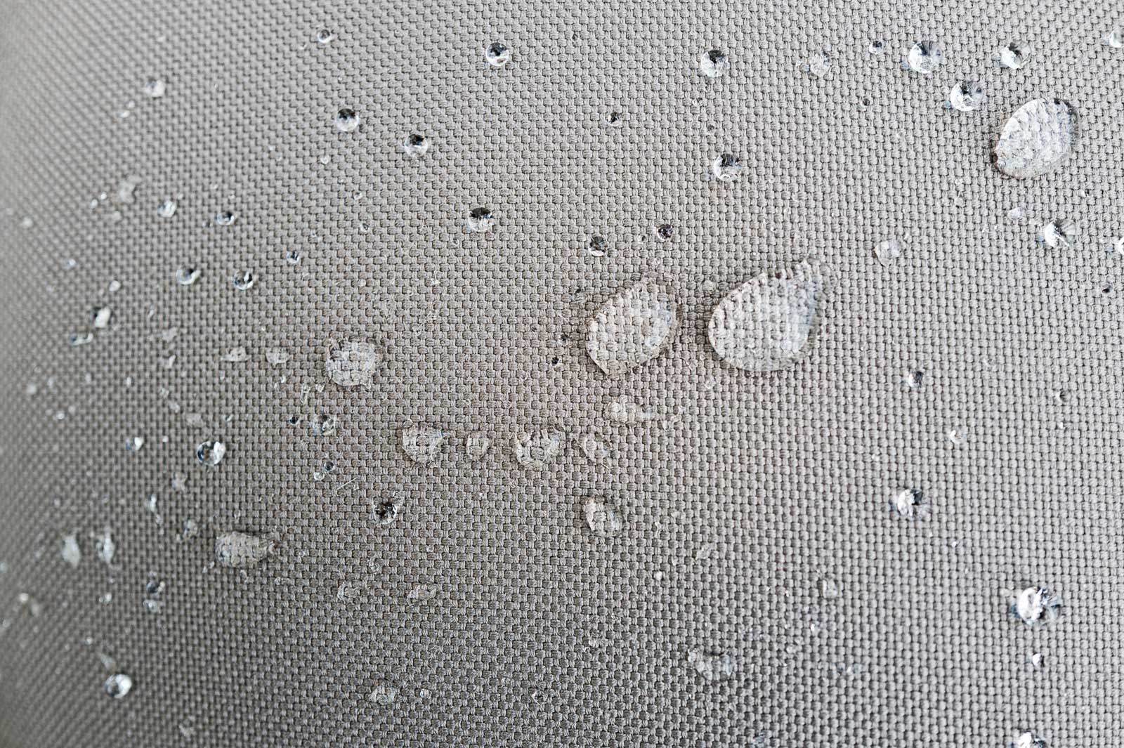 Der Stoff lässt Wassertropfen wie an einer Scheibe abperlen.